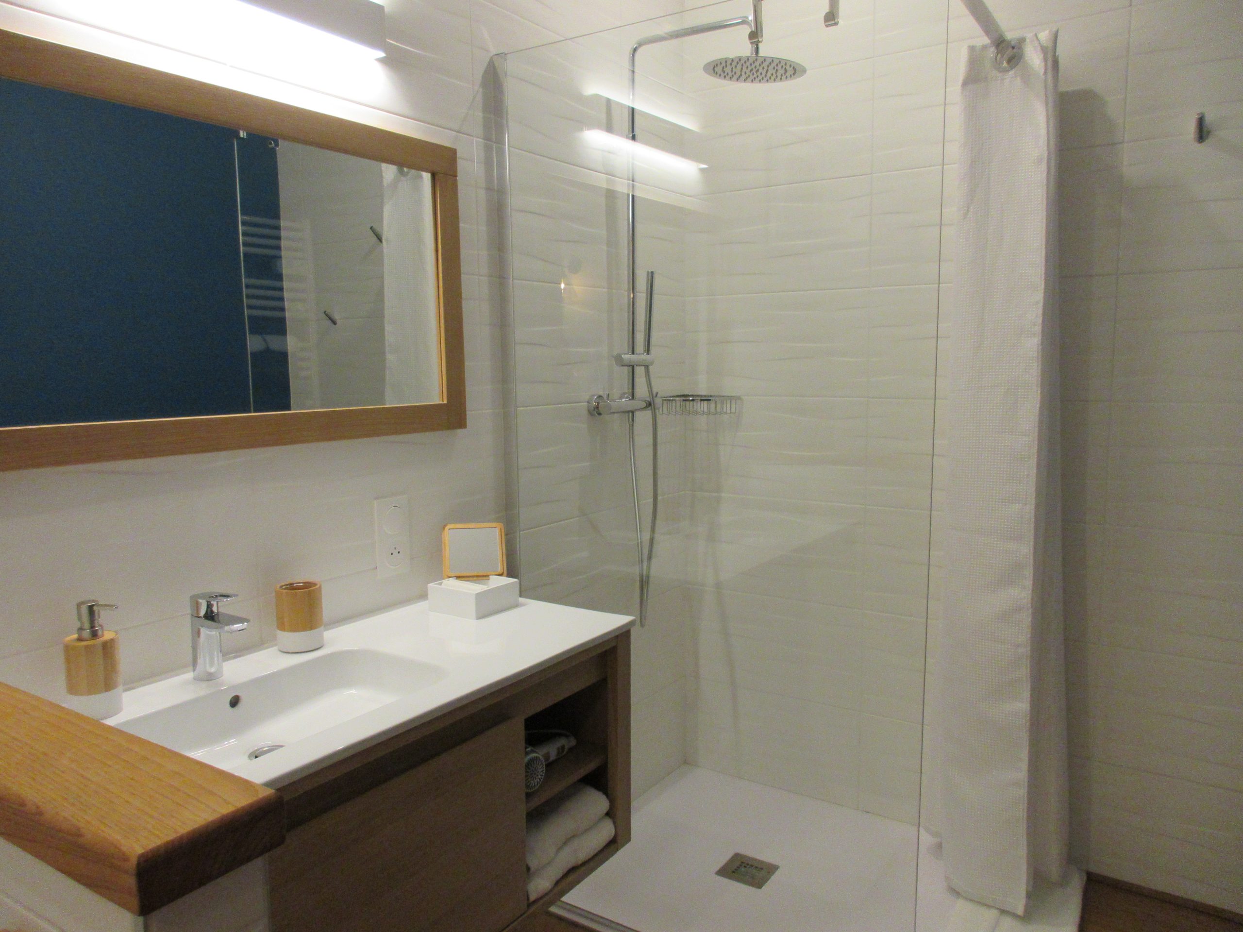Lit 160cm- Salle d’eau privative en pierre naturel avec douche à l’Italienne – Charmant coin salon pour vous détendre ou regarder la télévision.