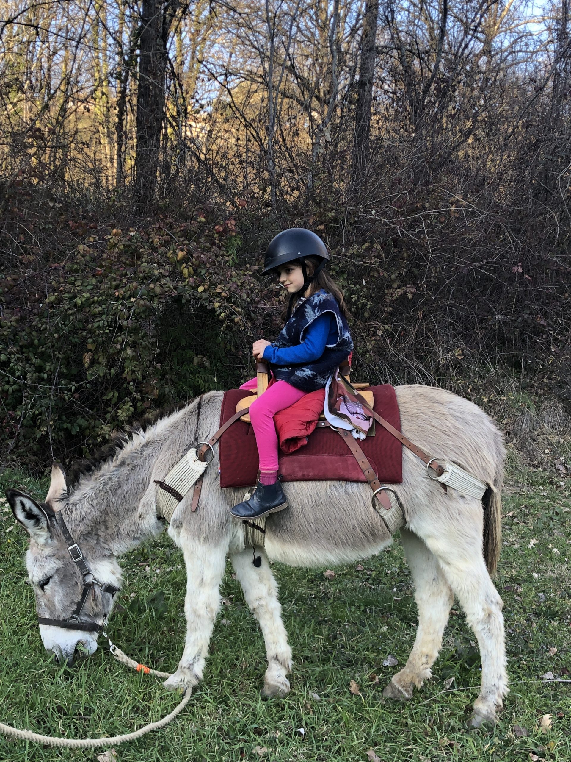 Pour les enfants de moins de 45kg, il est possible de faire la balade à dos d’âne avec un adulte qui tient l’âne en longe.