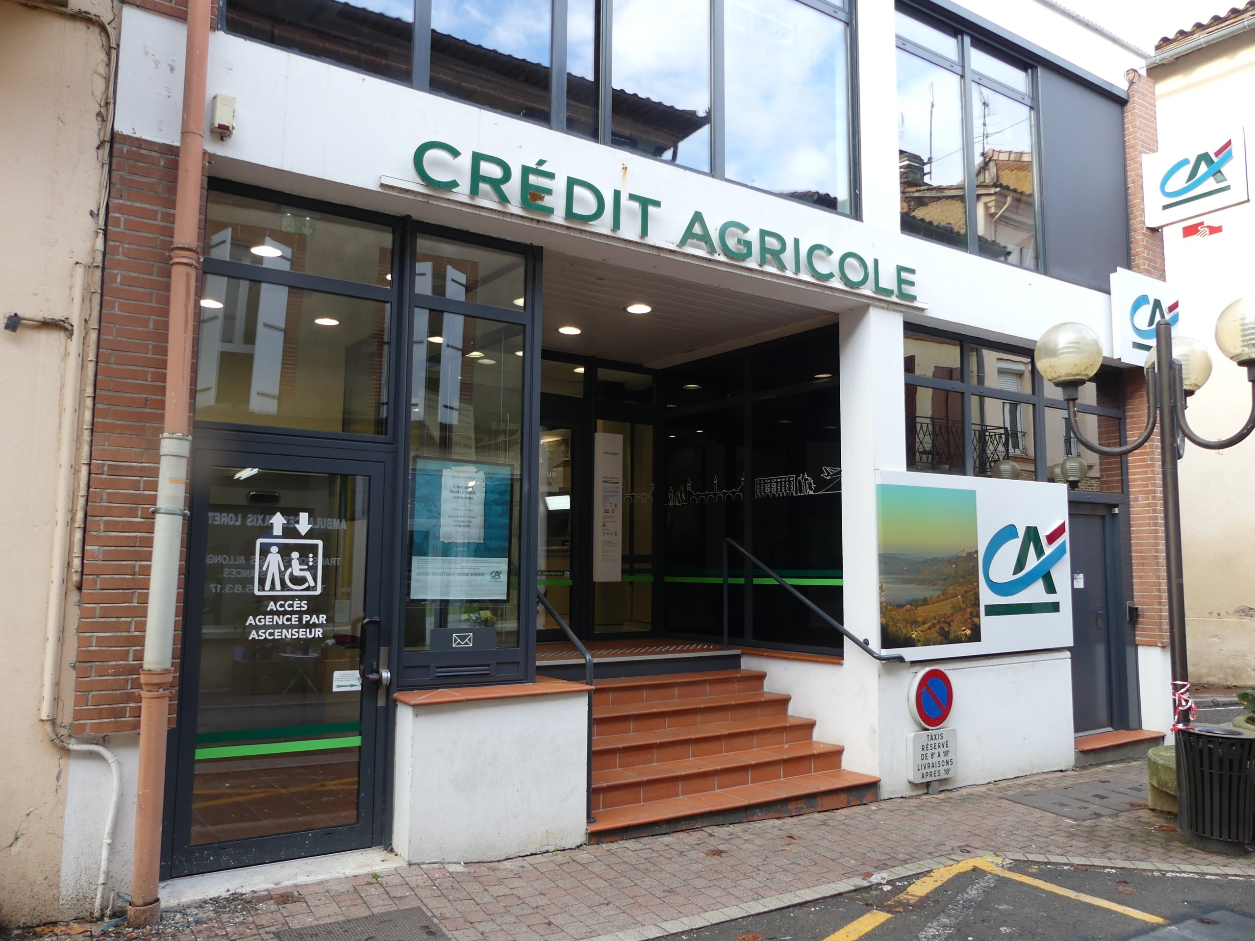 Des conseillers sont disponibles le matin avec ou sans rendez-vous ou l’après-midi sur prise de rendez-vous préalable. L’accès à la banque et au distributeur se fait par un escalier ou un élévateur pour personnes à mobilité réduite.
