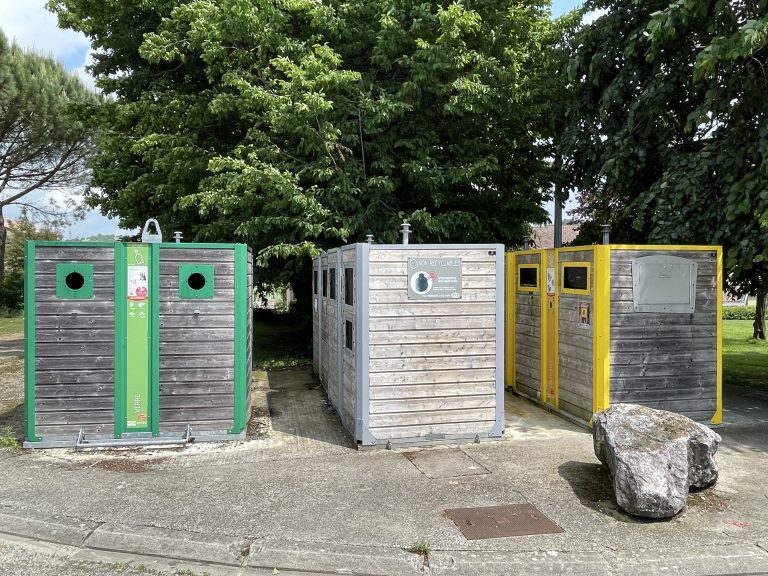 Bornes de tri pour les papiers, le verre, le non recyclable, les emballage et composteurs partagés pour vos déchets.