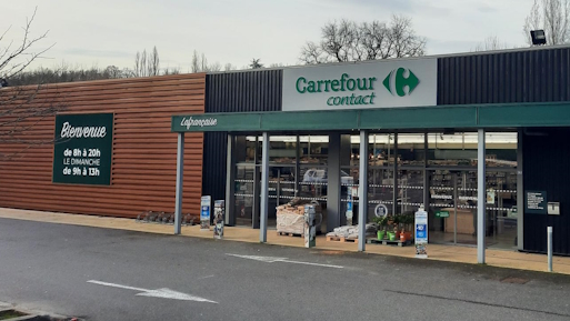 Le supermarché dispose d’un parking gratuit avec places pour PMR, chariots, une borne de recharge électrique et machine à laver en libre service.