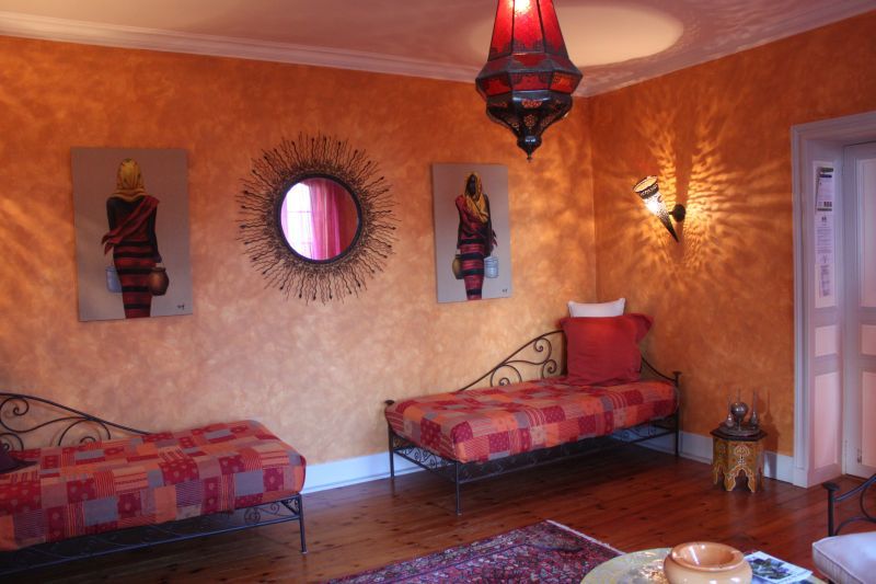 Au 1er étage : chambre « La Française » (lit 160cm, salle de bain), chambre « Savane » (lit 160cm, salle d’eau et WC séparés), suite « Orientale » (lit 160cm, 2 lits 90cm, salle de bain).
