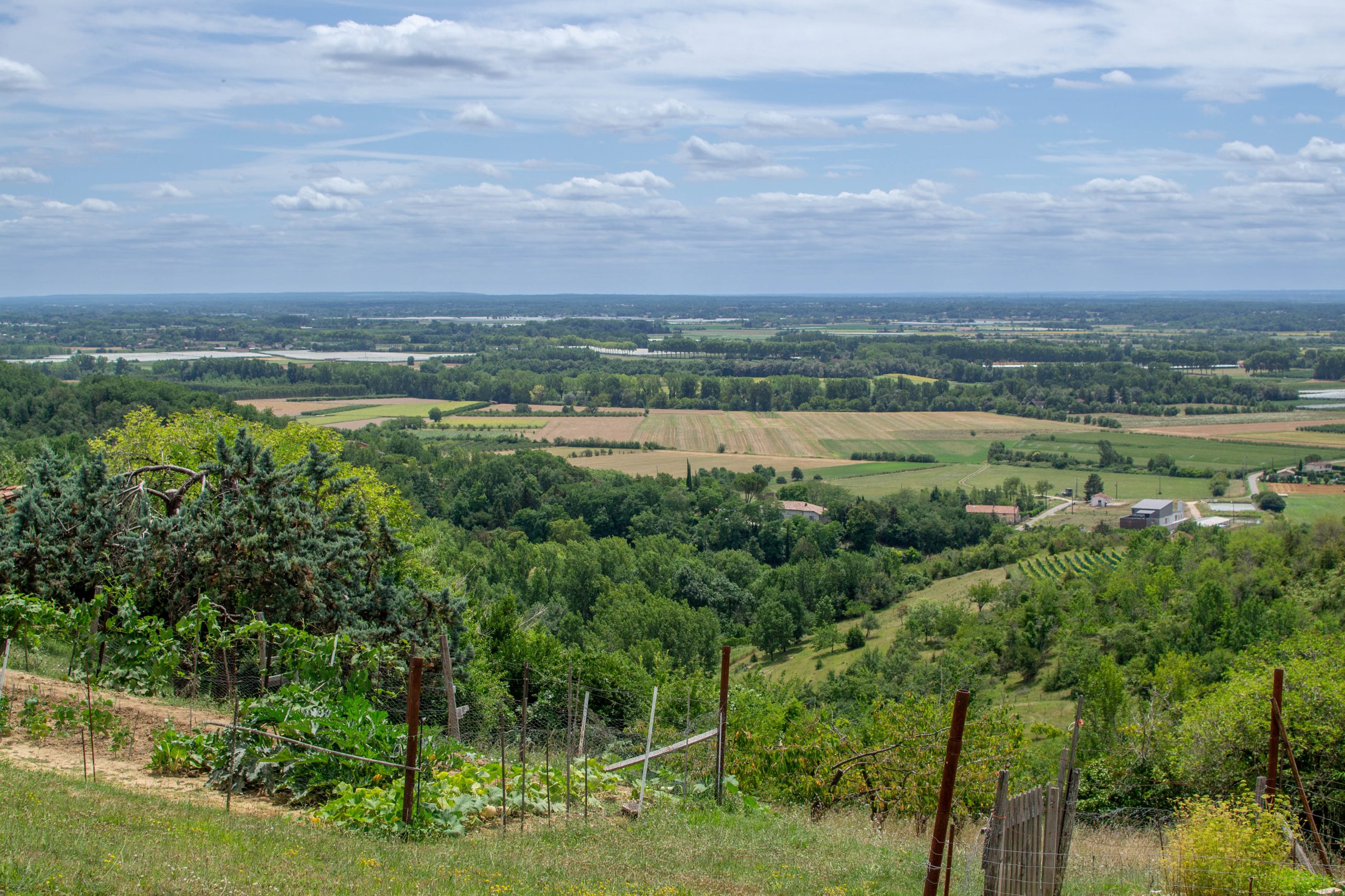 En remontant le chemin de Gabelle, on peut s’offrir de jolis points de vue sur les coteaux, serres et vergers (pommes, abricots, cerises, prunes, pêches …), sur Montauban et parfois même sur les Pyrénées, par temps dégagé.