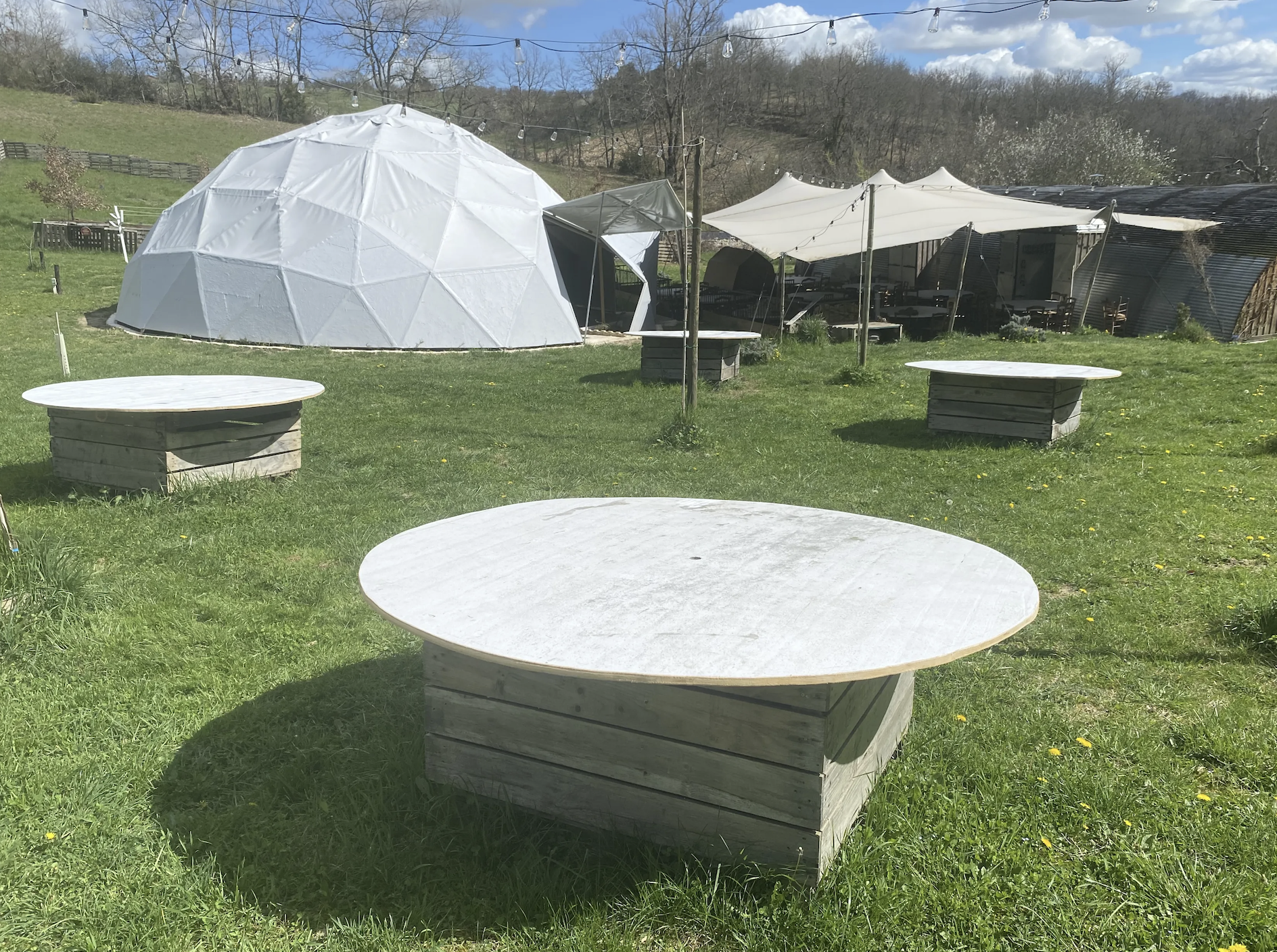 Poursuivez la magie, en séjournant sur place dans l’une des tentes meublées. Cinq mètres de diamètre, matelas confortables, draps et couvertures fournies.