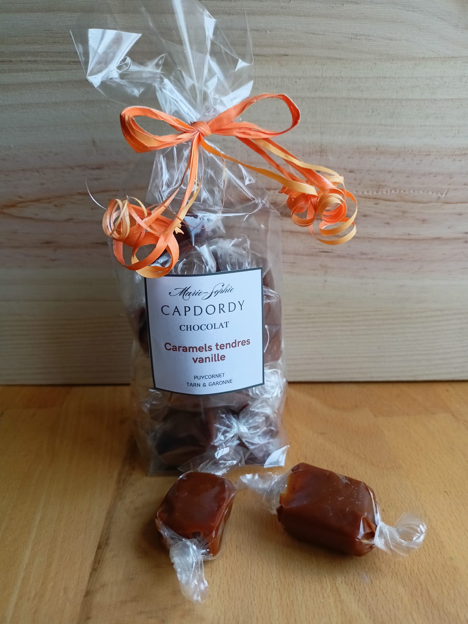 Mix caramels : vanille, chocolat ou noisettes, amandes, noix chocolatées.