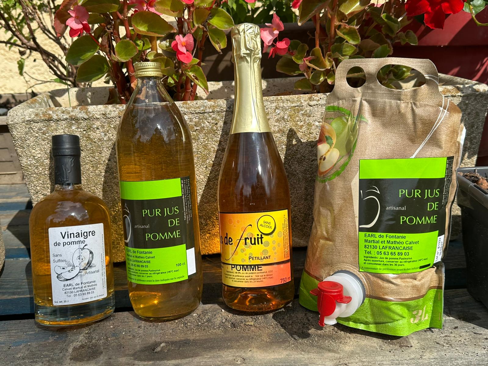Ils proposent aussi : jus de pomme 1L ou 3L, jus de pomme pétillant et du vinaigre de pomme.