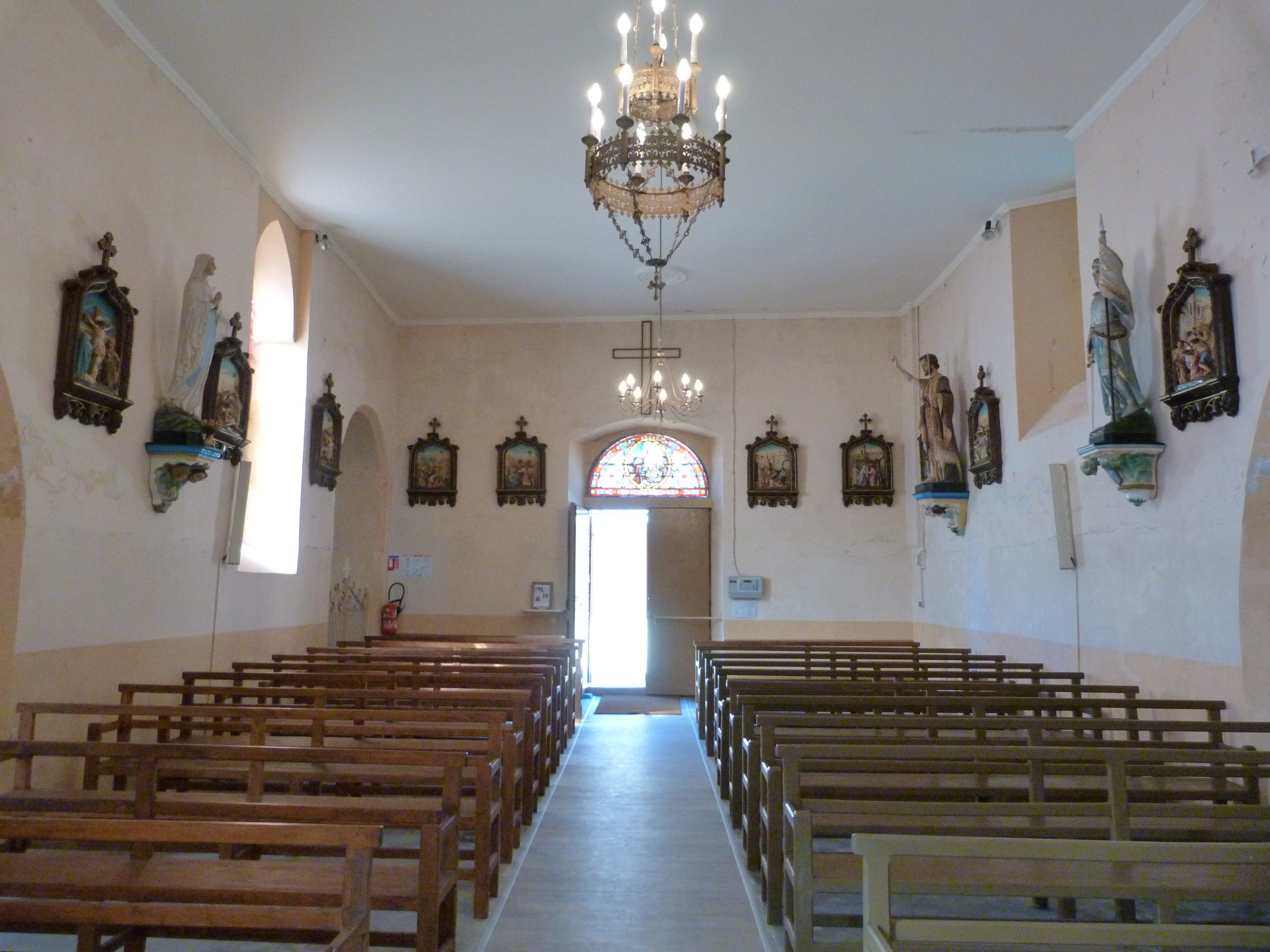 Elle a ensuite été très remaniée au XIXe siècle. C’est aujourd’hui une salle rectangulaire, terminée par un chœur à trois pans inégaux et couverte d’un lambris. Il existe de part et d’autre de la nef une chapelle latérale. C’est sur la façade refaite en 1835 que s’ouvre le portail et que s’élève le petit clocher-mur ajouré d’une seule baie.