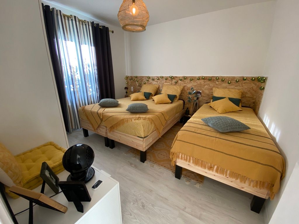 – une chambre (2 lits 80 rapprochables en 160 et 1 lit 90),