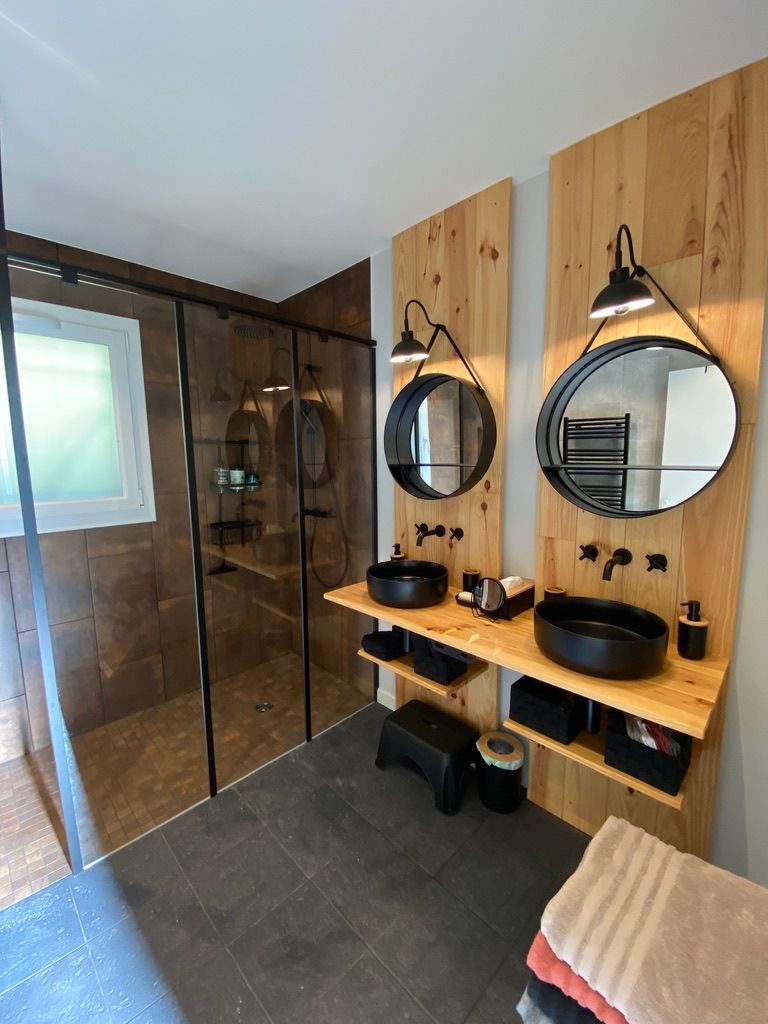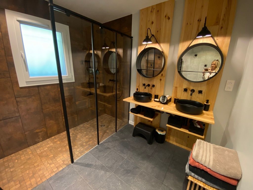 – une salle d’eau avec (douche à l’italienne, 2 vasques),