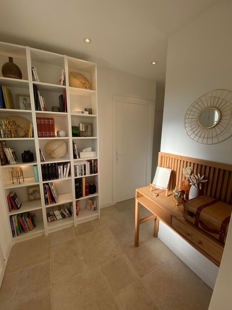 Le logement entièrement de plain-pied comprend une entrée avec bibliothèque fournie pour tous les âges, desservant :