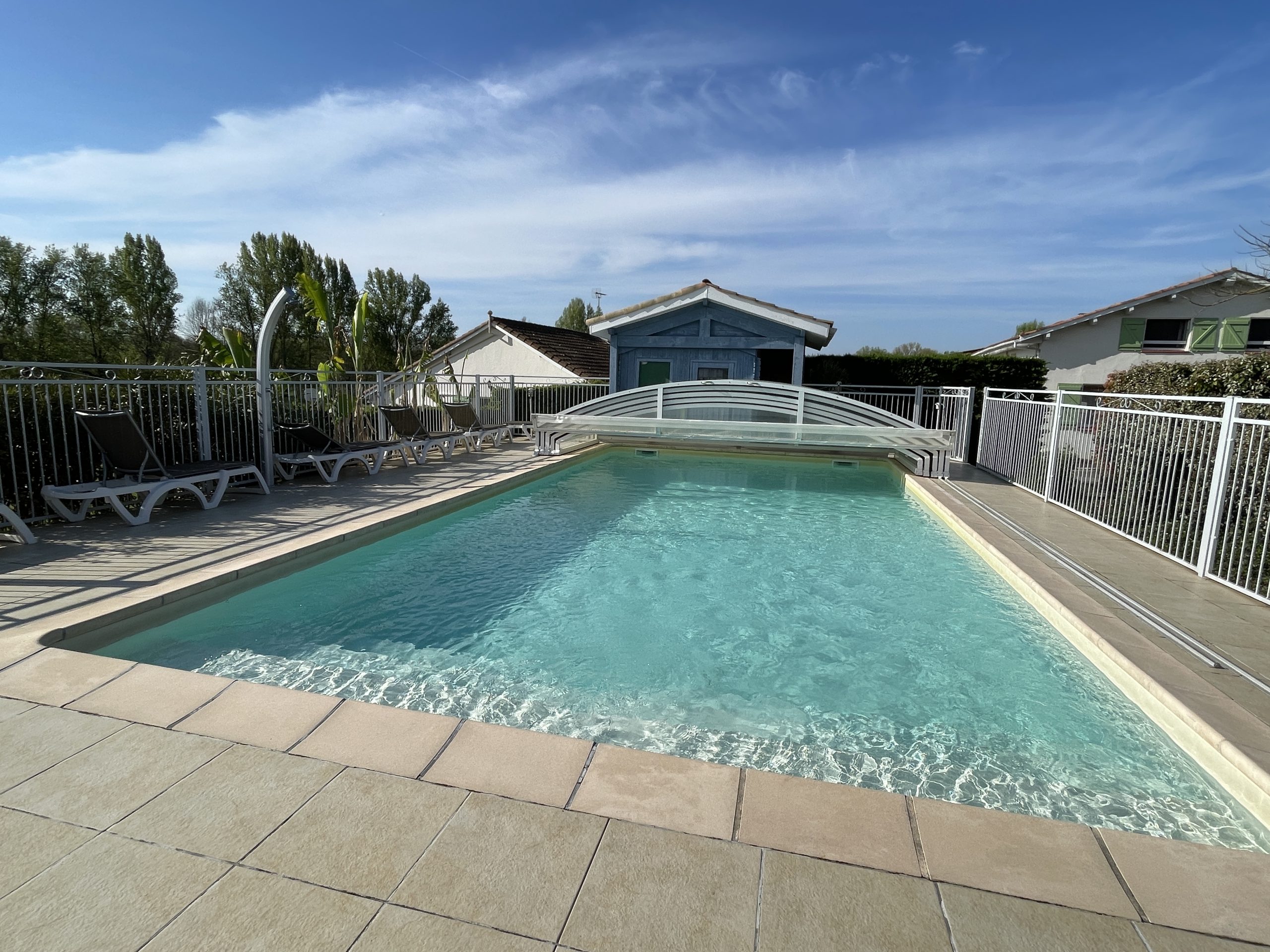Grand gîte très agréable, piscine sécurisée 10mx5m. Une grande pièce à vivre vous accueille, elle comprend un coin salon fauteuils, télévision, cheminée, très bon chauffage d’appoint, une grande salle à manger, avec une bibliothèque. Cuisine ouverte lumineuse, coin repas équipement complet.