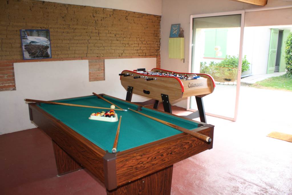 Un grand avantage pour les enfants : salle de jeux privative à votre gîte avec un baby foot et un billard, panier de basket avec ballon privatif.
