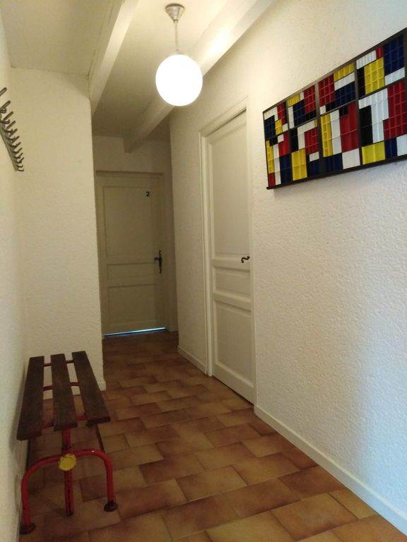 Grand dégagement, porte manteaux, banc, vide poche.