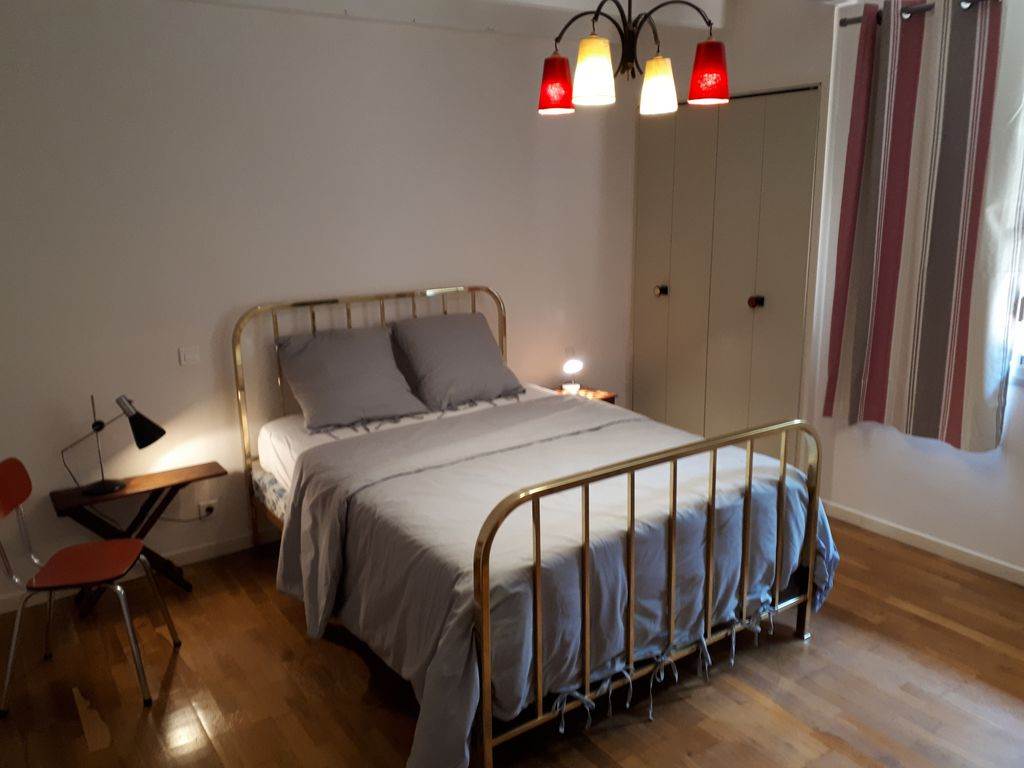 Chambre 1 : lit en 140cm, penderie, commode, rideaux occultant.