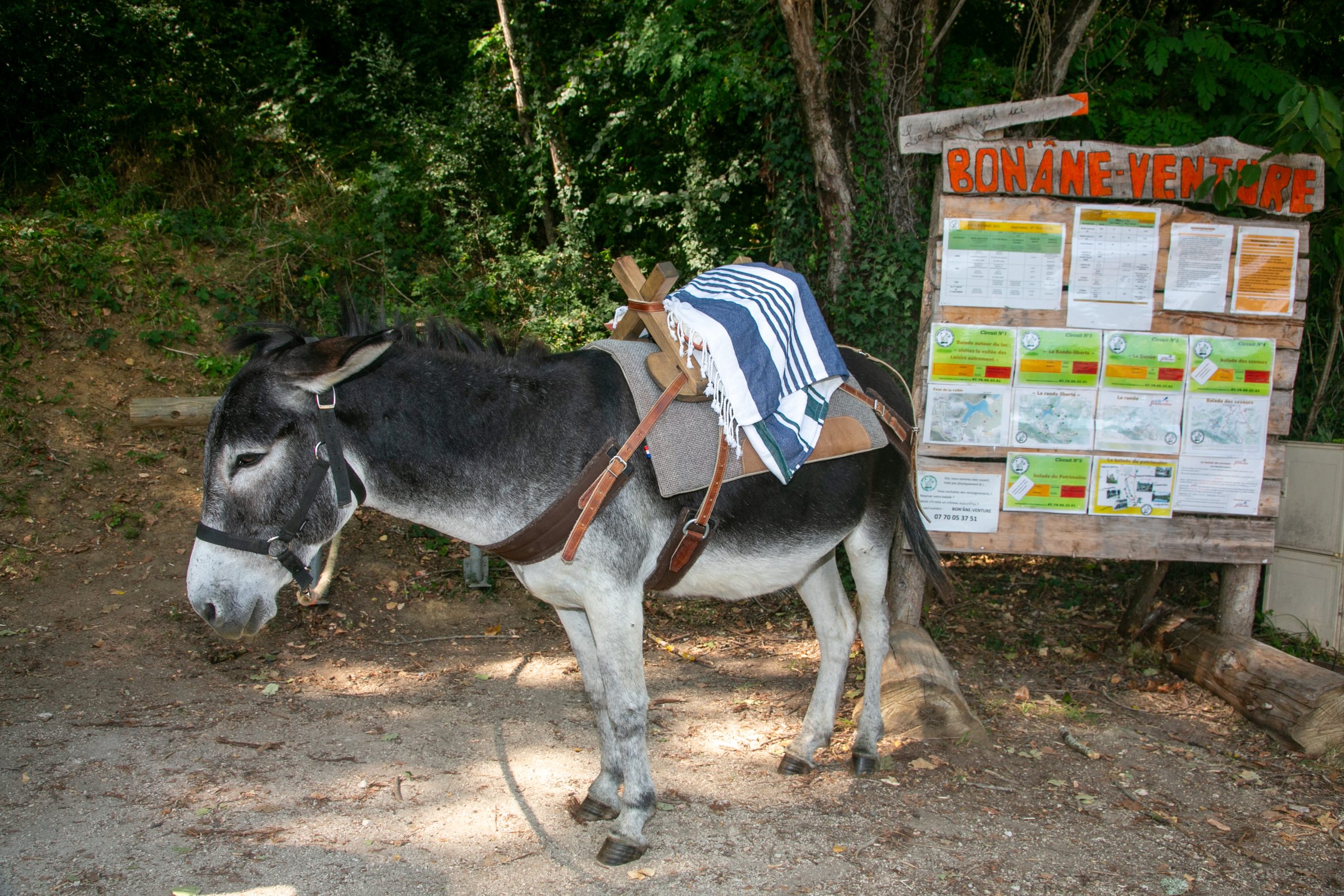 Au départ de la Vallée des loisirs et en direction de la vallée du Tarn, découvrez les jolis paysages qui vous entourent en compagnie de vos amis les ânes.