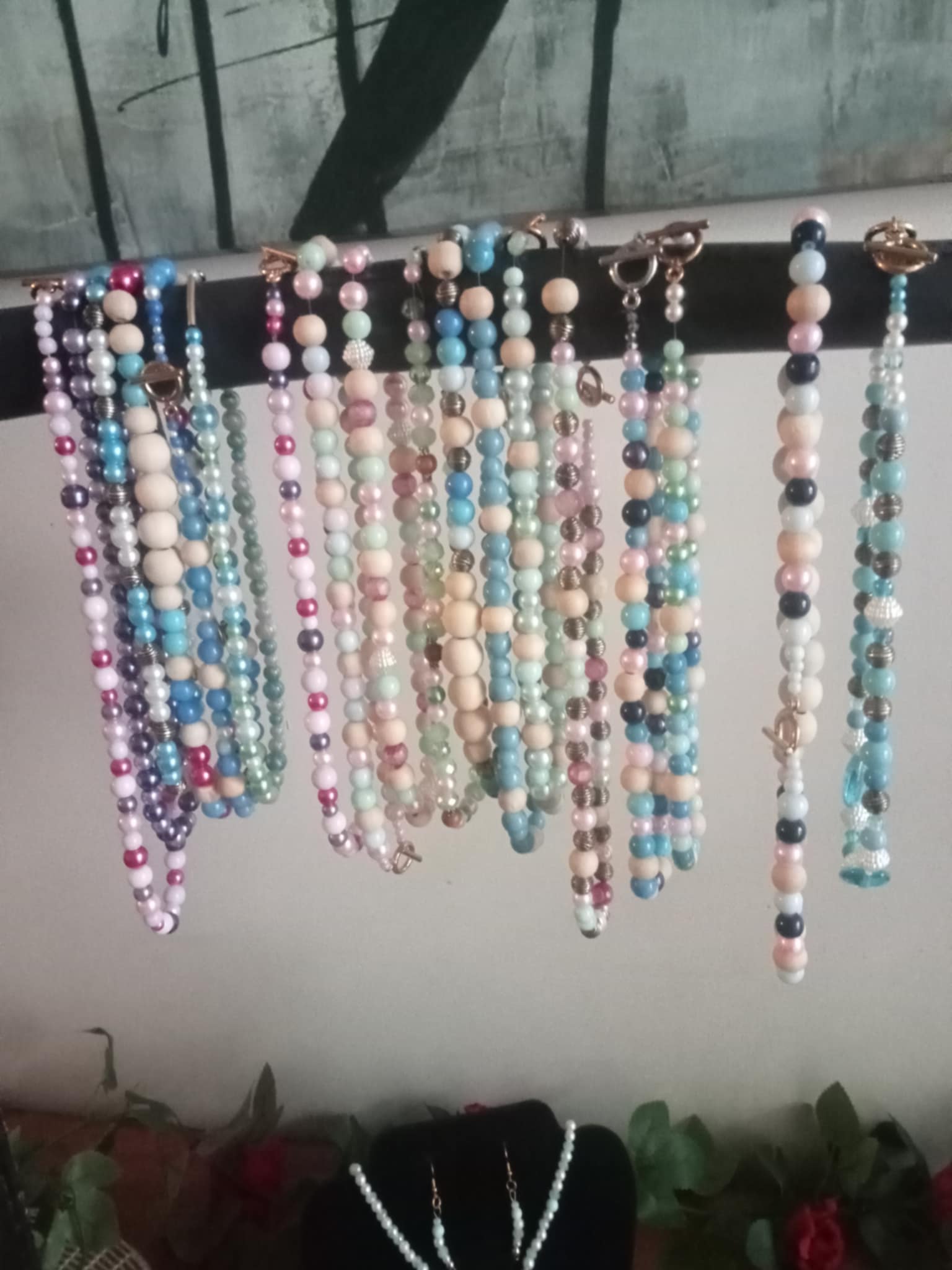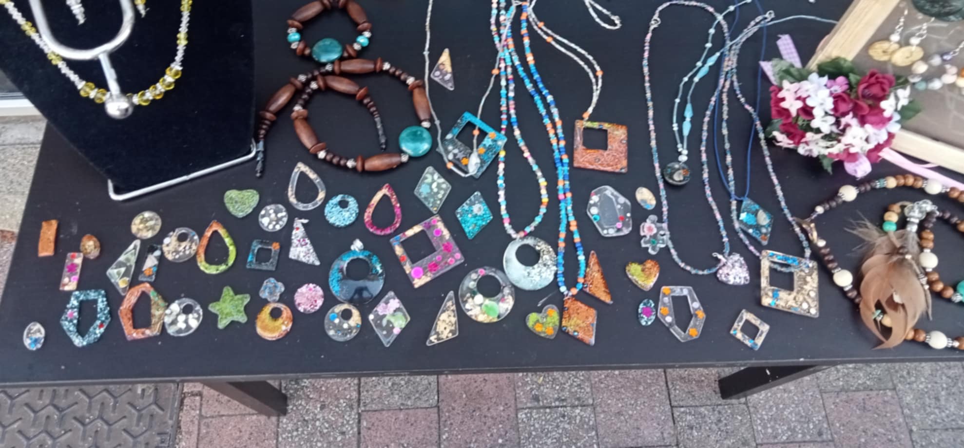Fabrication artisanale de bijoux de perles de verre et bois. Fabrication artisanale de bijoux de résine.