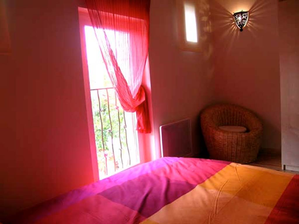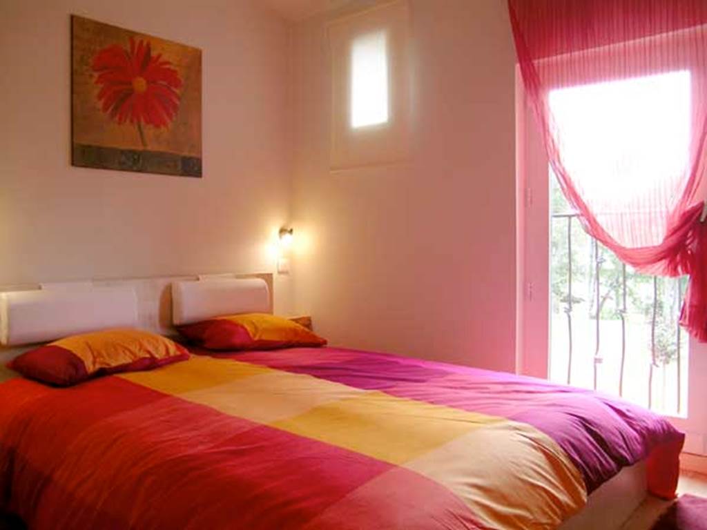 A l’étage, la chambre aux tons lumineux est très cosy (1 lit 140), 1 salle d’eau.