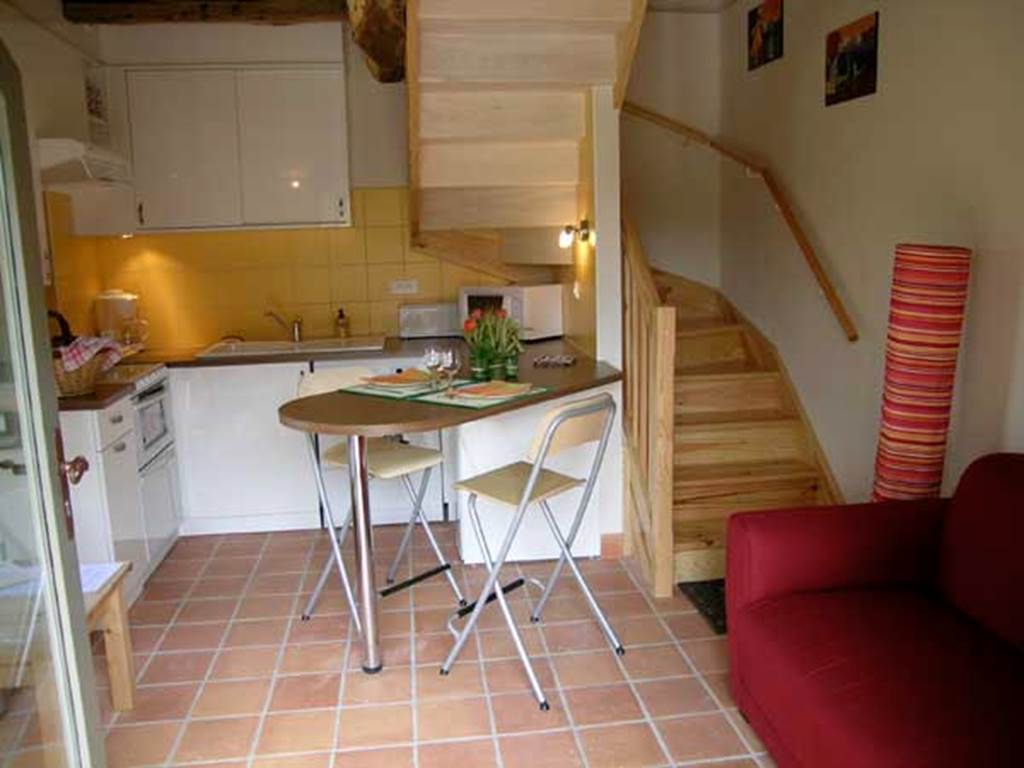 Aménagé très confortablement, le pigeonnier du Gué comprend une cuisine entièrement équipée (micro-ondes) et un salon.