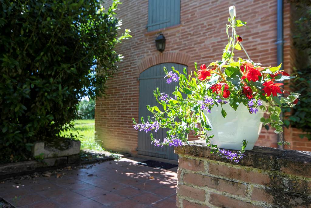 Petite terrasse pour profiter des grands espaces verts arborés et fleuris autour du pigeonnier.