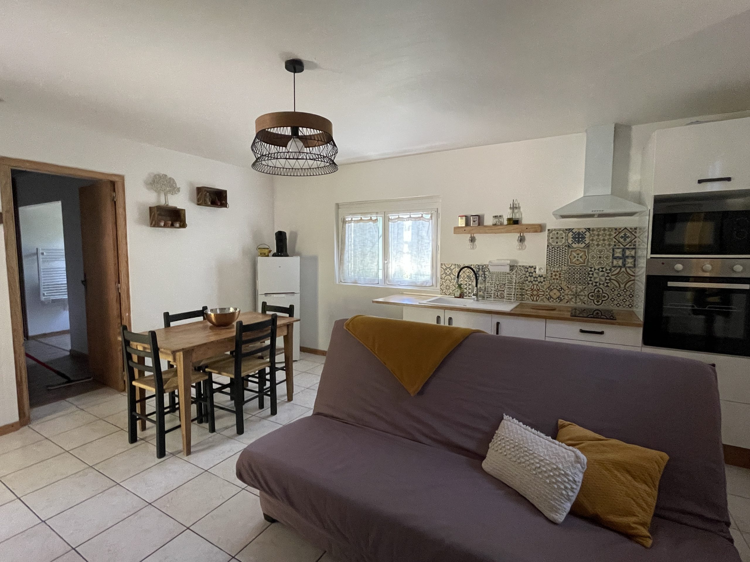 Bel espace de vie avec télévision et cuisine entièrement équipée + espace repas, 1 grande chambre avec un lit en 140×200 pour 2 avec salle de bains et douche, wc séparé. Un canapé lit d’appoint 120×200 se situe dans l’espace de vie pour accueillir 1 ou 2 autres personnes.