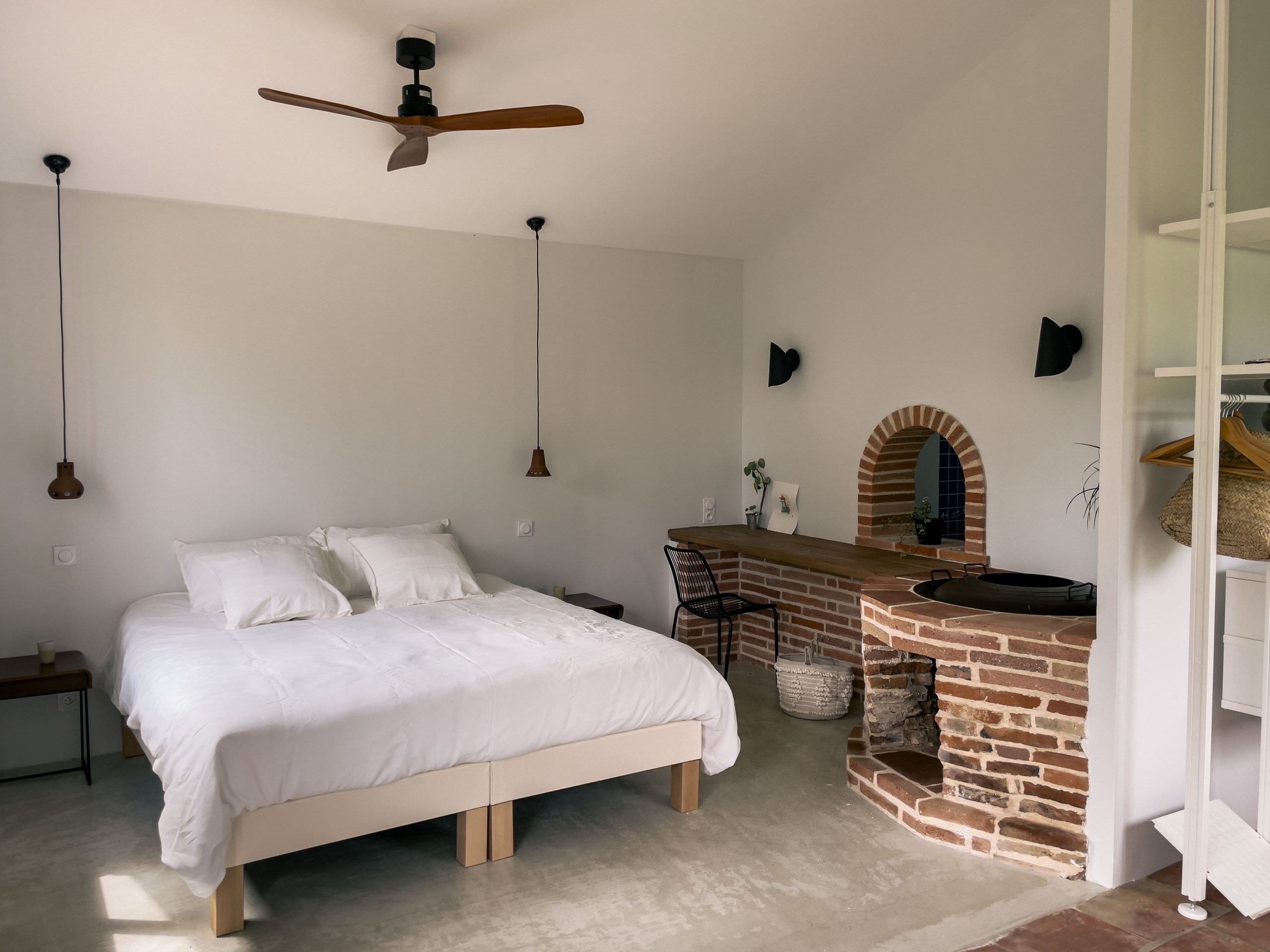 – Bâtiment restauré avec sobriété (béton ciré bio, isolation efficace et ventilée)