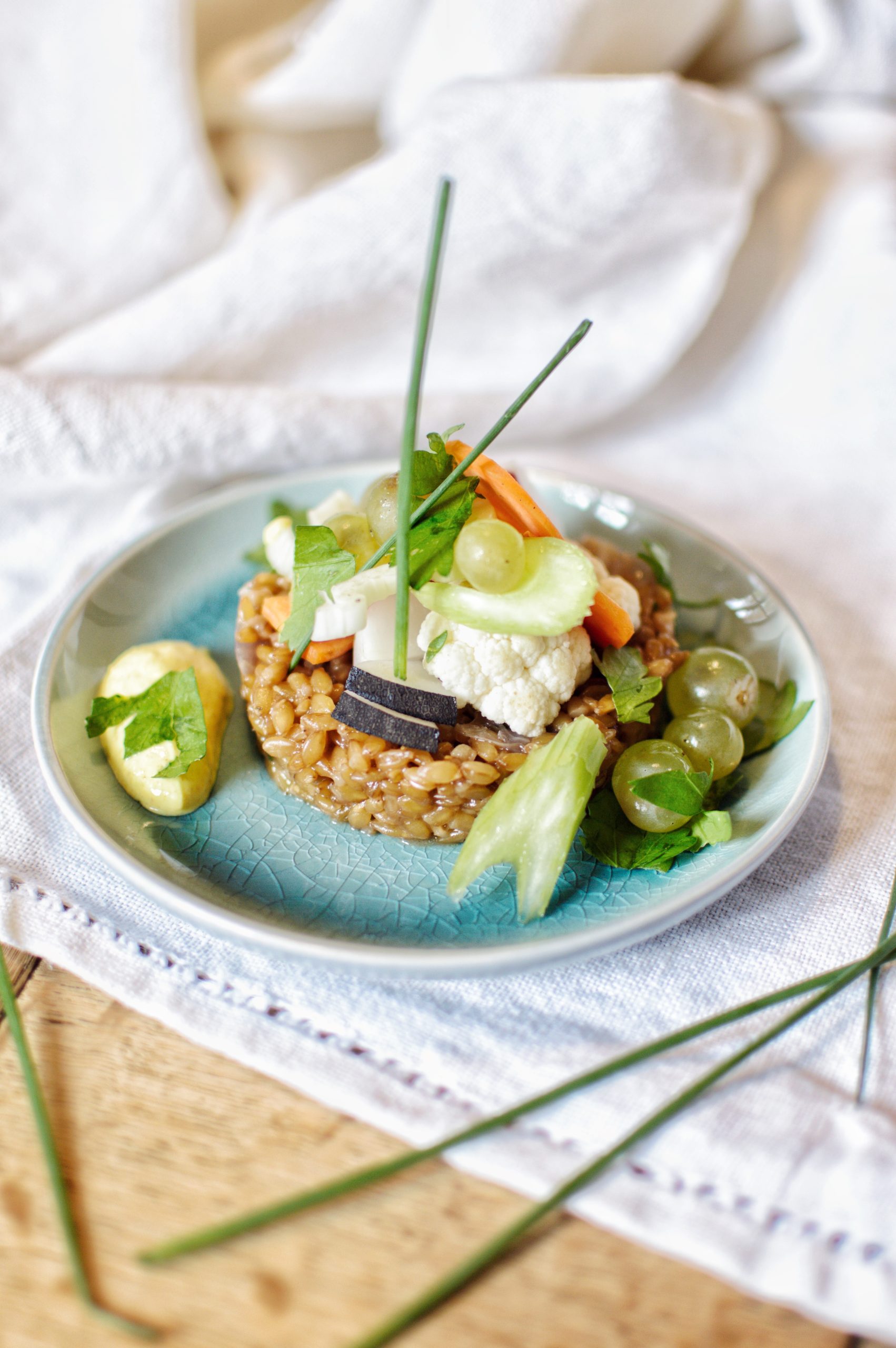 Ses choix d’approvisionnement participent aussi de cette même volonté : privilégier les producteurs locaux chaque fois que cela est possible. Et même “ultra-locaux” lorsque ses légumes frais et bio proviennent du champ d’en face et beaucoup de nos fruits du jardin !
