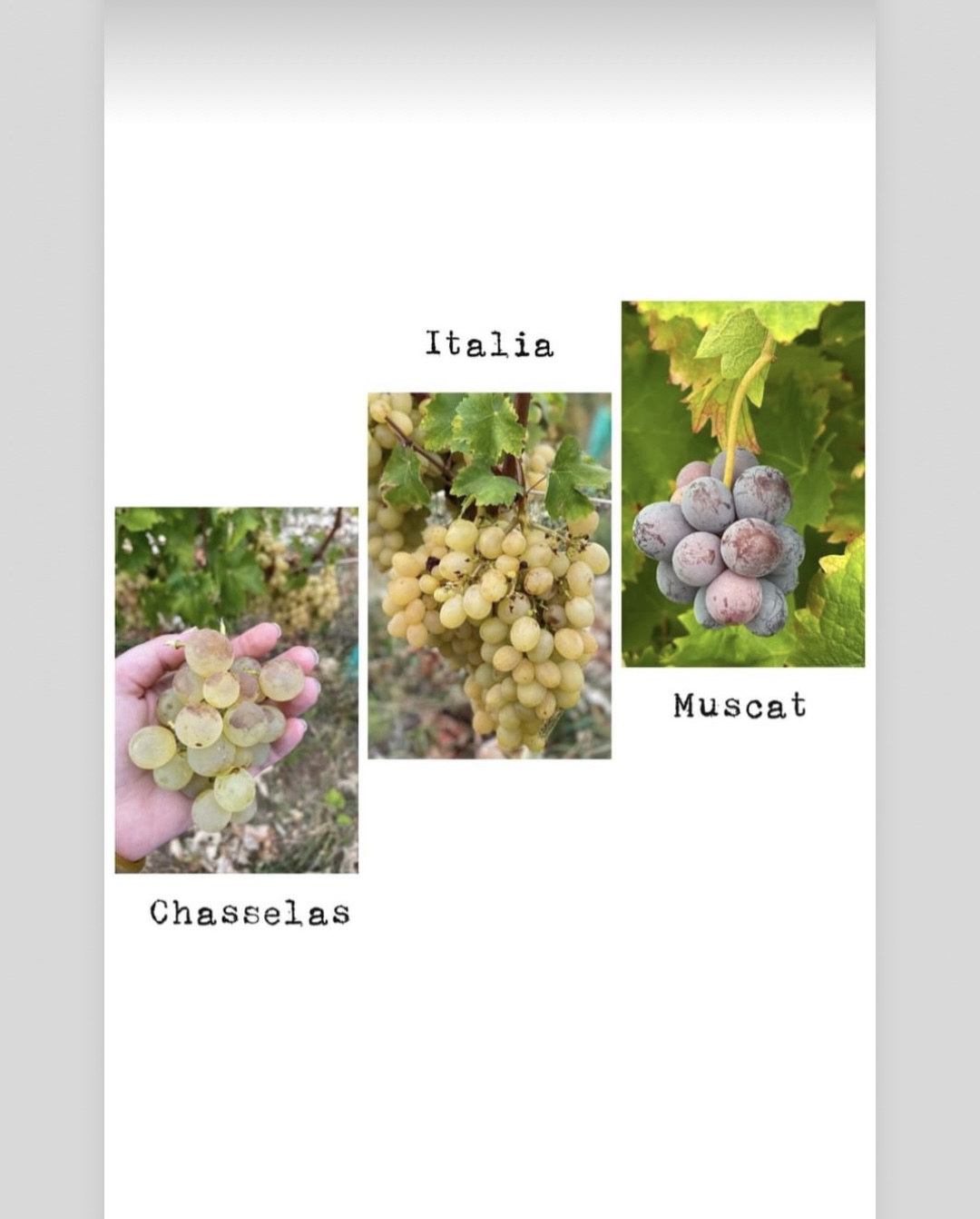 Jus de fruits : pomme/raisin, raisin chasselas, muscat et pétillant