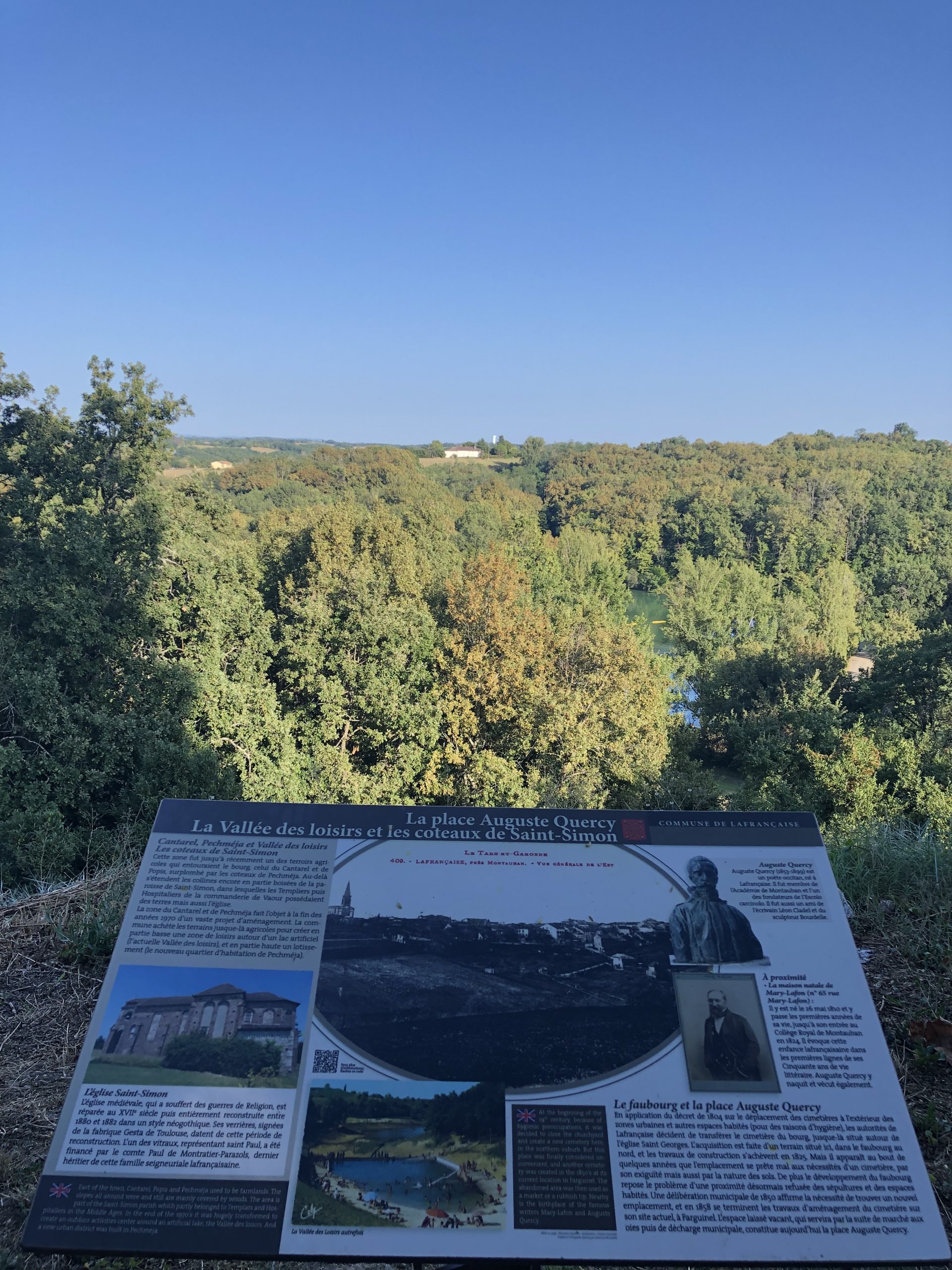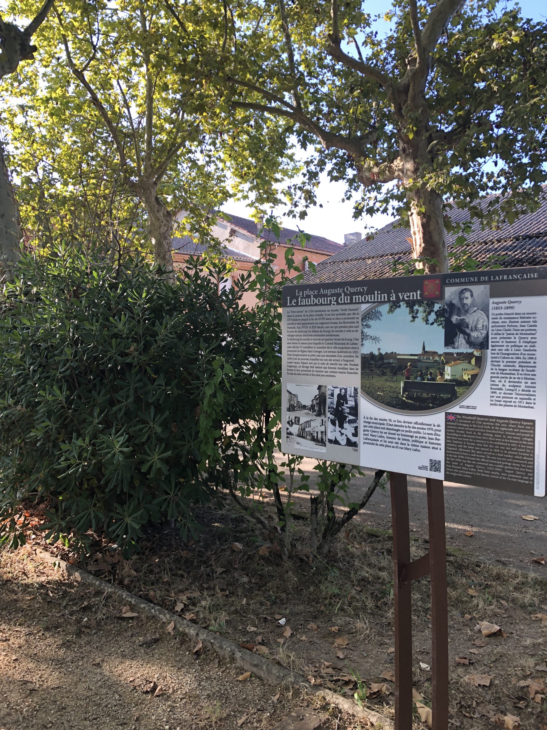 Parking gratuit ombragé sans limite de temps avec une dizaine d’emplacements situé Place Auguste Quercy à Lafrançaise. Panneaux historiques sur place.