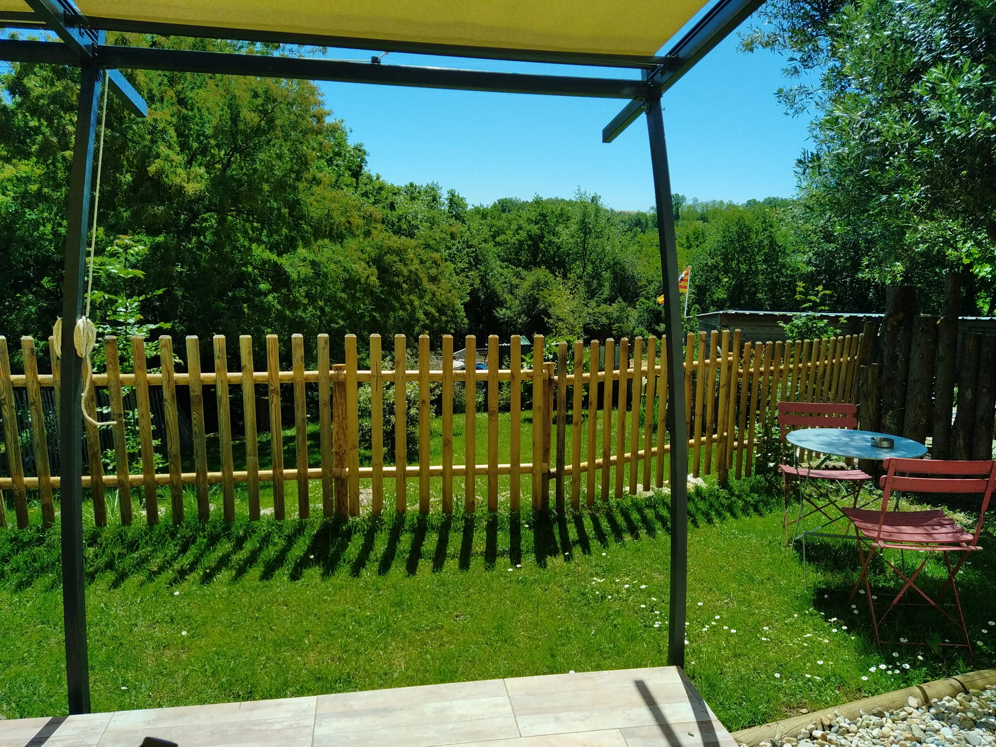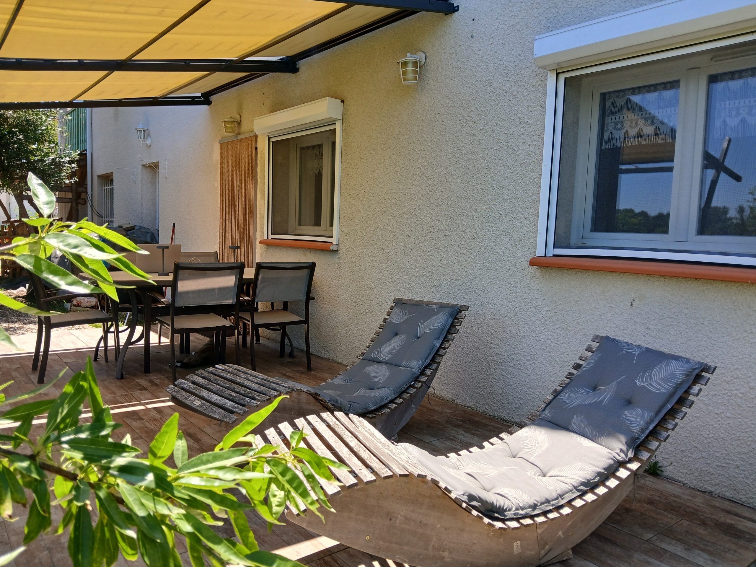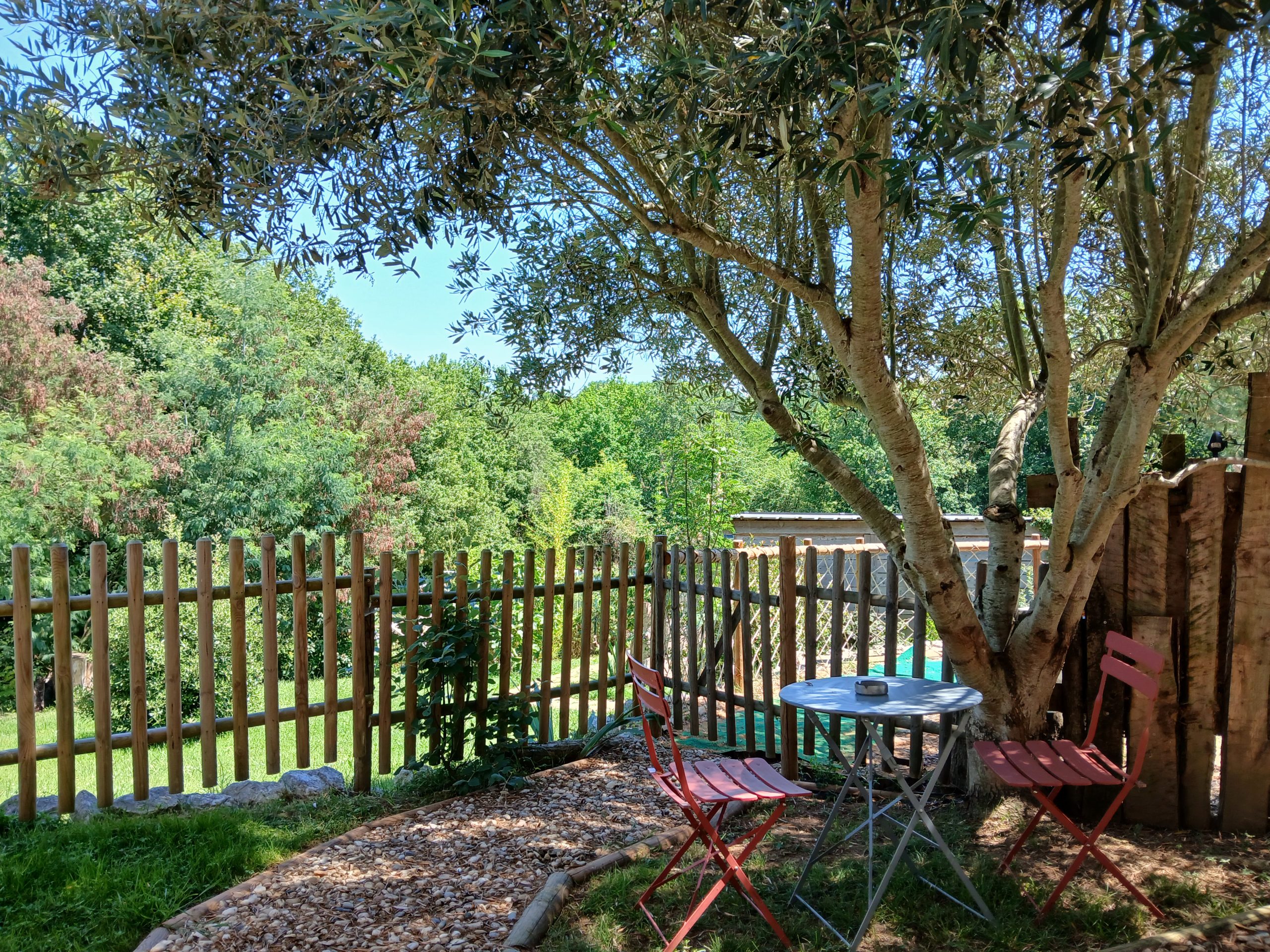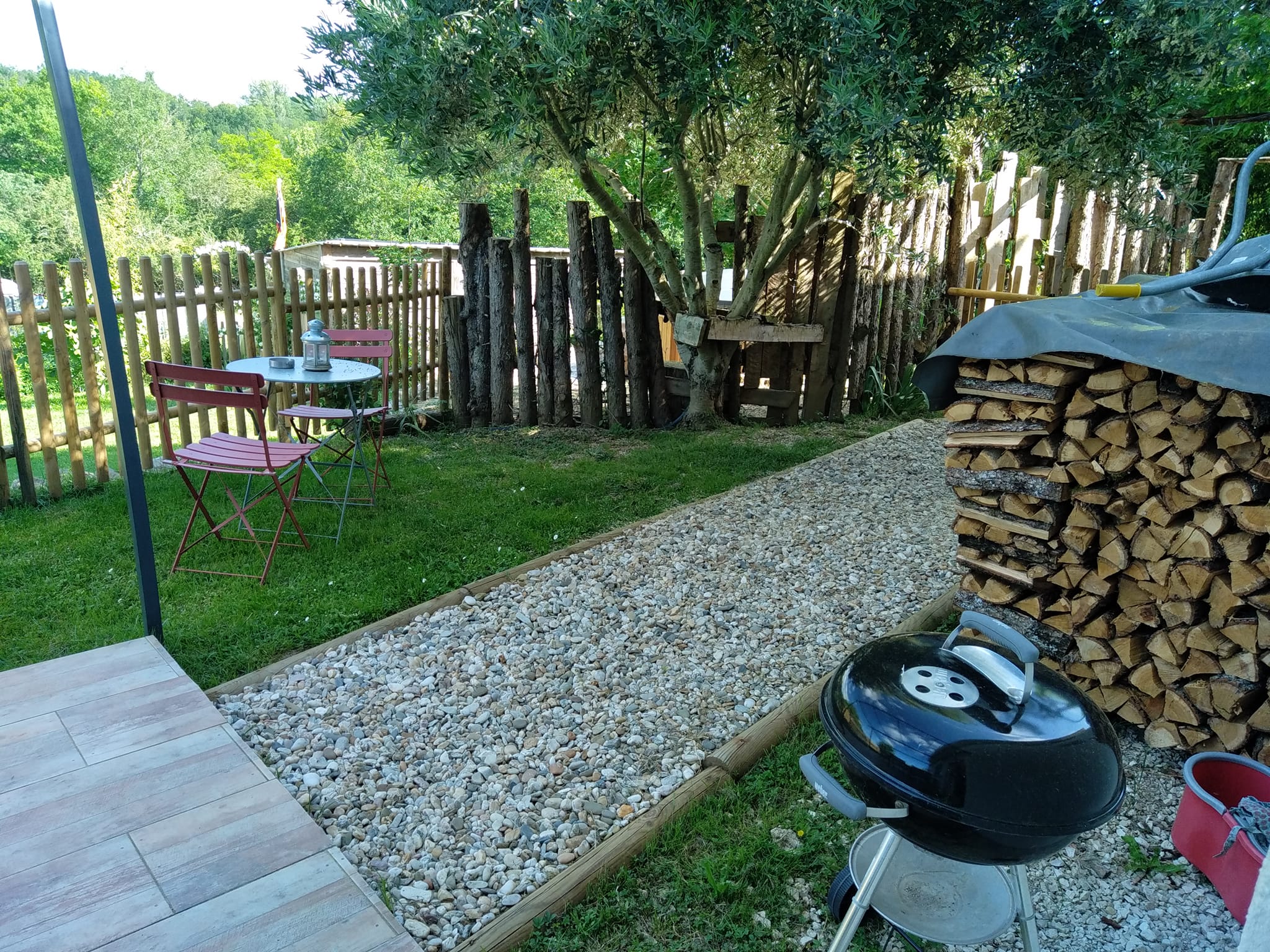 Le gîte dispose d’un emplacement privatif à l’arrière de la maison, comprenant une terrasse et un jardin sans vis-à-vis. Vous y trouverez un salon de jardin avec transats, un barbecue, le tout ombragé grâce à la pergola. Un bain nordique est à votre disposition pour une relaxation optimale ainsi que des jeux extérieurs pour enfants.