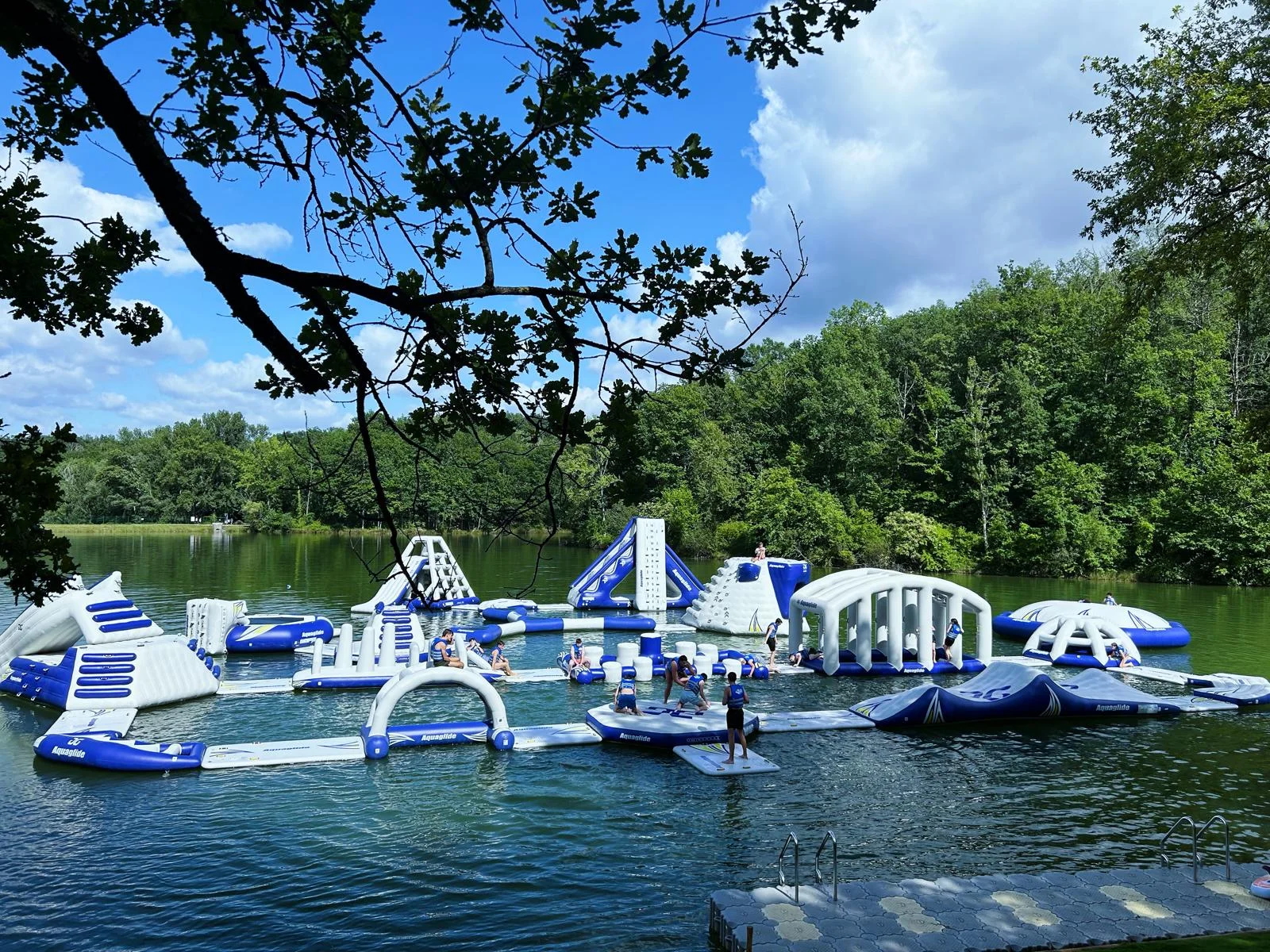 Découvrez L’Aquapark à Lafrancaise, composé d’un parcours aqua-ludique avec des plongeoirs, murs d’escalade, tobbogans pour petits et grands sur le lac.