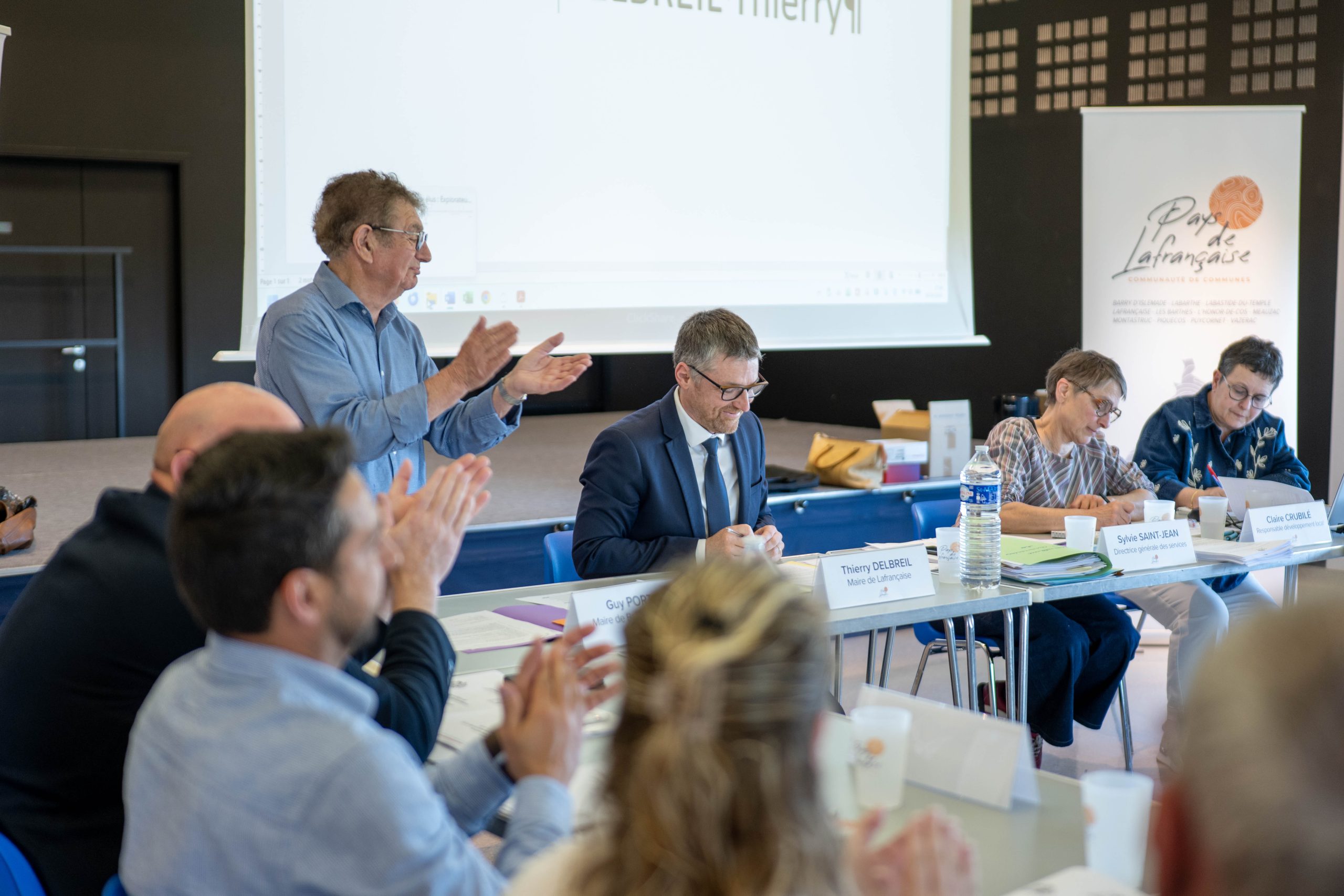 Thierry DELBREIL, Maire de Lafrançaise ; Brigitte DELCASSSE, Lafrançaise ; Alain MALMON, Lafrançaise ; Colette VERDOUX, Lafrançaise ; Jean-Pierre ANGLAS, Lafrançaise ; Camille LE BERGER, Lafrançaise ; Franck SEGONNE, Lafrançaise ; Jean-Michel PRAYSSAC, Maire de Puycornet ; Christine POEZEVARA, Puycornet ; Michel LAMOLINAIRIE, Maire de L’Honor de Cos ; Eliane MIRC, L’Honor de Cos ; Alain GABENS, L’Honor de Cos ; Chantal COMBALBERT, L’Honor de Cos ; André BRESSANGES, Maire de Vazerac ; Benoît ARADES, Vazerac ; Denis GUINOUNET, Maire de Labarthe ; Serge RESSIJAC, Labarthe ; Anthony COSTES, Maire de Montastruc ; Guy PORTAL, Maire de Barry d’Islemade ; Didier MARTY, Barry d’Islemade ; Céline BOUGUET, Barry d’Islemade ; Mathieu PIERASCO, Maire de Labastide du Temple ; Frédéric LACROIX, Labastide du Temple ; Coralie GAILLARD-BEDIN, Labastide du Temple ; Jean-Marc MIRAMONT, Mairie de Les Barthes ; Pierre DOSSUN, Les Barthes ; Jean-Louis CORLOUER, Meauzac ; Eliette RUELLE, Meauzac ; José LACOMBE, Maire de Meauzac ; Caroline PRADEAU, Meauzac ; Camille LOPITAUX, Maire de Piquecos ; Jean-Michel TROTIGNON, Piquecos ; Jérôme BERTRAND, Suppléant, Montastruc.